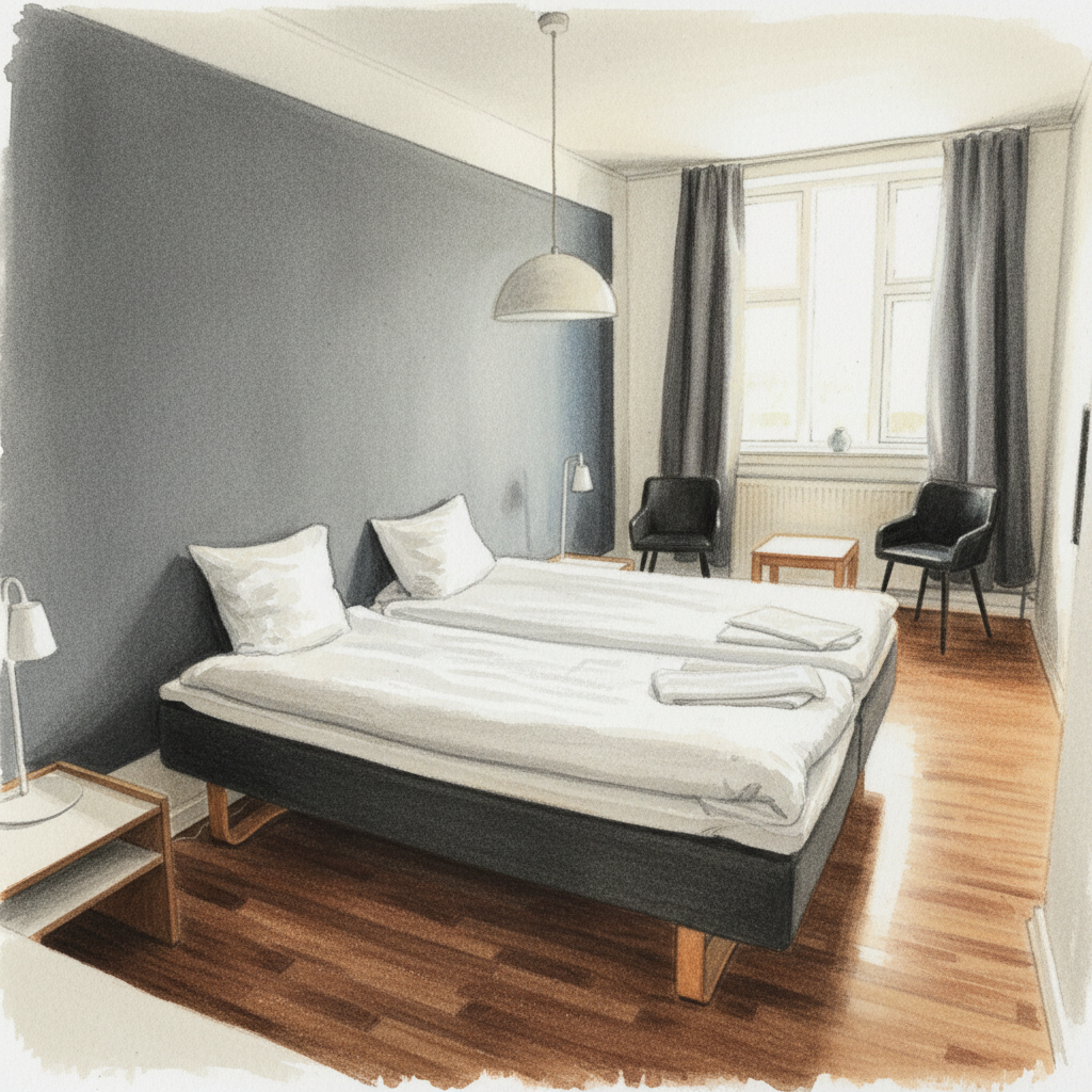 Bemærk venligst at vi ikke tilbyder morgenmad. I stedet henviser vi til de nærliggende bagere og cafeer - f.eks. Kvicklys bager, bare 50 meter fra hotellet.